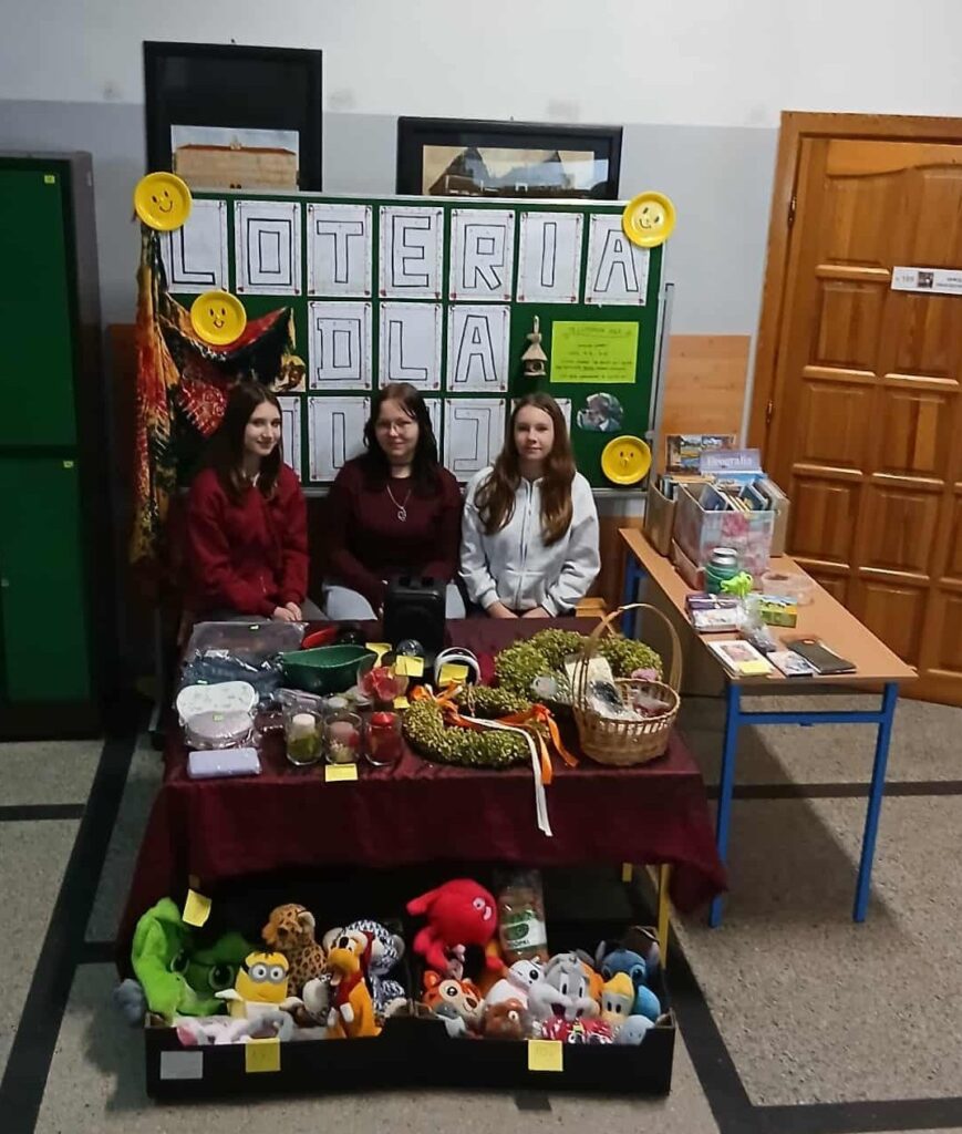 Za nami kolejna LOTERIA DLA MISJI ! W tym roku wyjątkowa, bo dedykowana nie tylko Dzieciom , ale również dla Rodzicom i Nauczycielom. Już w środę, podczas spotkań z Rodzicami, sprzedaliśmy sporo naszych fantów. Natomiast LOTERIA dla dzieci ruszyła w czwartek na przerwach. Trudno opisać, ile pięknych gestów budzi to wydarzenie, ile dobra ze sobą niesie… Dziękujemy wszystkim, którzy uczestniczyli w naszej LOTERII: Pani Agnieszce, która przyniosła fanty, dodawała otuchy i wspomagała całe przedsięwzięcie. Nadii, która w przeddzień obdarowała nas pięknymi fantami oraz Pani Marcie, która także o nas pamiętała . Wielu, wielu osobom, które wspierały nas gestami dobroci . Bardzo dziękuję Uczniom, którzy tak wspaniale zaangażowali się w przeprowadzenie Akcji. Przede wszystkim Martynie, Oli i Wiktorii z klasy 7a . Także Oliwii z klasy 5a oraz wspaniałej drużynie z klasy 3c (Lenie ,Maszy, Kostii i Stasiowi). Dziękuję wszystkim, którzy kupowali nasze fanty, ale także tym, którzy po prostu podchodzili i ofiarowywali nam pieniądze na naszą Akcję. Zebraliśmy ponad 1200 złotych. Ostateczną kwotę podamy w najbliższych dniach, ponieważ zbiórka jeszcze nie została zamknięta. Dzięki Waszej hojności możemy udzielić pomocy zaadoptowanej przez naszą Społeczność Szkole w Republice Środkowej Afryki.