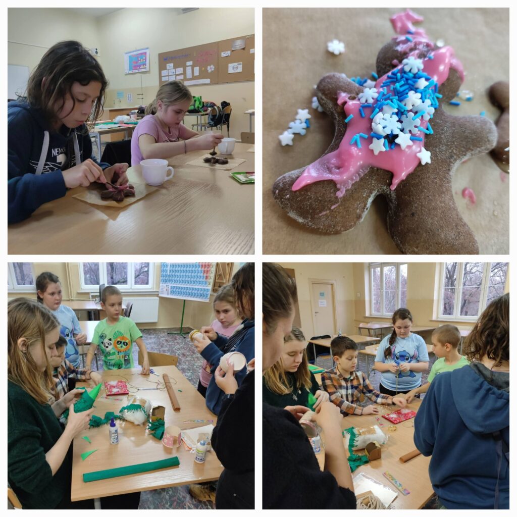„W dniach przedświątecznych uczniowie biorący udział w Akademii Przyszłości uczestniczyli w wyjątkowych warsztatach, pełnych ciepła, radości i wspólnego tworzenia. Spotkanie rozpoczęło się od serdecznych powitań – uczniowie mieli okazję poznać wolontariuszy, którzy towarzyszyli im przez cały czas trwania warsztatów, a także wzajemnie się zaprezentować, dzieląc się swoimi pomysłami na nadchodzące święta.