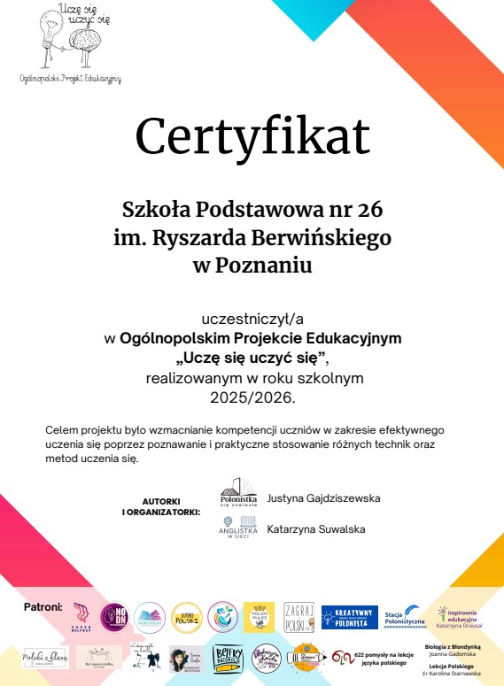 Certyfikat „Uczę się uczyć się”