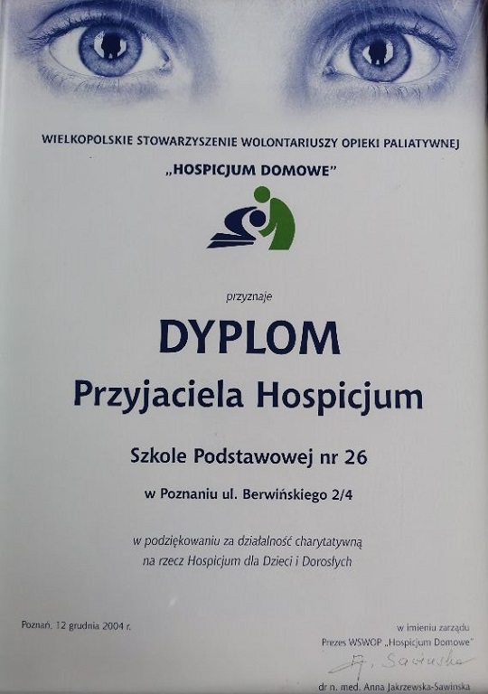 Dyplom „Przyjaciela Hospicjum”
