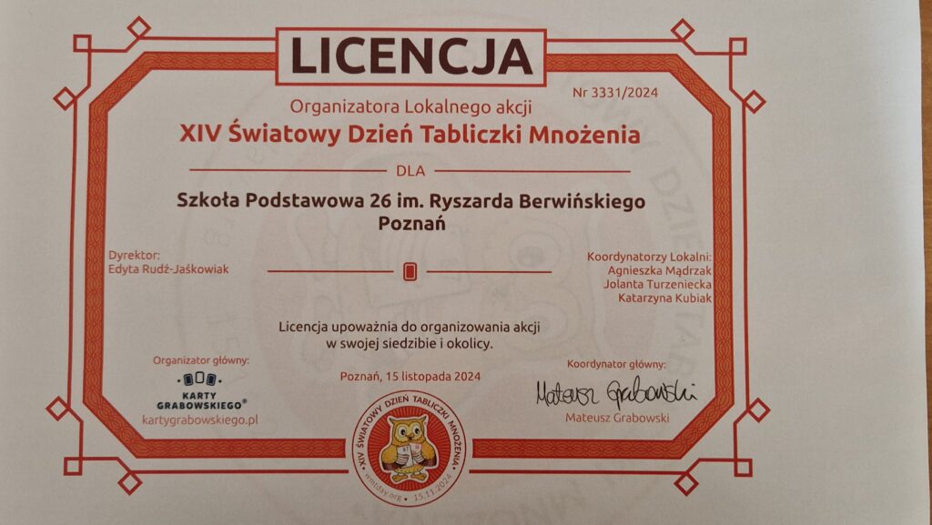 Licencja XIV Światowy Dzień Tabliczki Mnożenia.