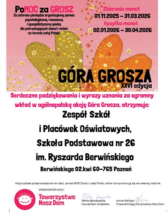 Podziękowanie za udział w „Górze Grosza”2026