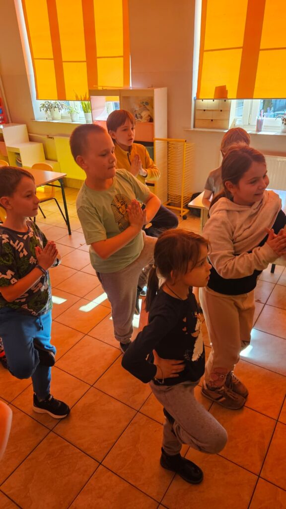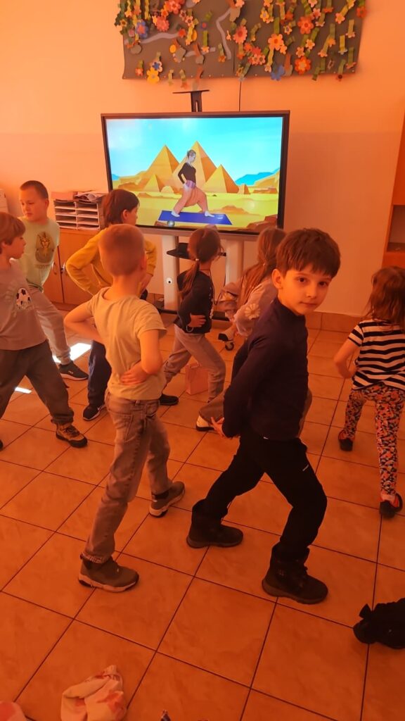 Po feriach wróciła do naszej świetlicy energia, ruch i dużo uśmiechu — a to wszystko za sprawą zajęć jogi! Dziś dzieci ćwiczyły razem z wyjątkowym gościem: Ramzesem prosto z Egiptu, który zabrał nas w podróż pełną wyobraźni, rozciągania i dobrej zabawy.